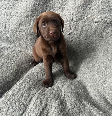 Jasmine Veil is a sweet chocolate Labrador with a calm and affectionate nature. Her soft, glossy coat and warm, soulful eyes instantly draw you in.